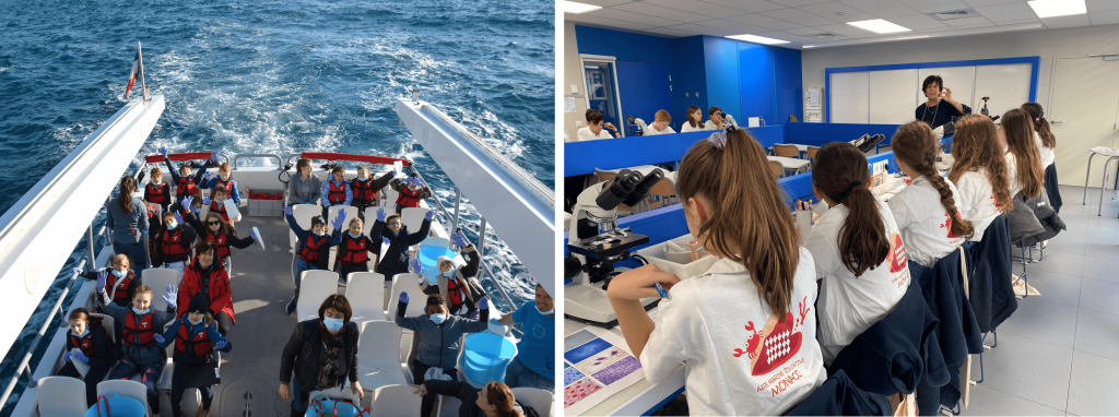 In collaboration with the permanent secretariats of the ACCOBAMS and Pelagos agreements, the students chose to raise awareness about the preservation of cetaceans. To this end, they presented a film, directed by Mr. Stéphane JAMME (Aquanaute), retracing the various workshops in which they participated and recalling the code of good conduct as well as the good actions to adopt in the event of an encounter with cetaceans. In addition, they participated in a collaborative artistic work on the theme of cetaceans, the result of work with the artist Mr One Teas. This work now adorns the walls of the Saint Charles School. To close this year, the students were able to observe these animals in the Pelagos Sanctuary during whale watching days led by Captain Antoine DROCHON from Papeete II (certified structure). These excursions were made possible thanks to the support of the Department of National Education, Youth and Sports and the Monegasque Sport Fishing Federation.